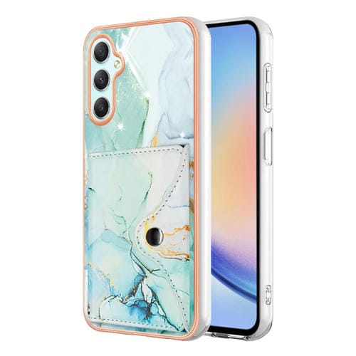 Estuche para Teléfono Samsung Galaxy A24 con Ranura para Tarjeta Imd con Patrón de Mármol (Verde)
