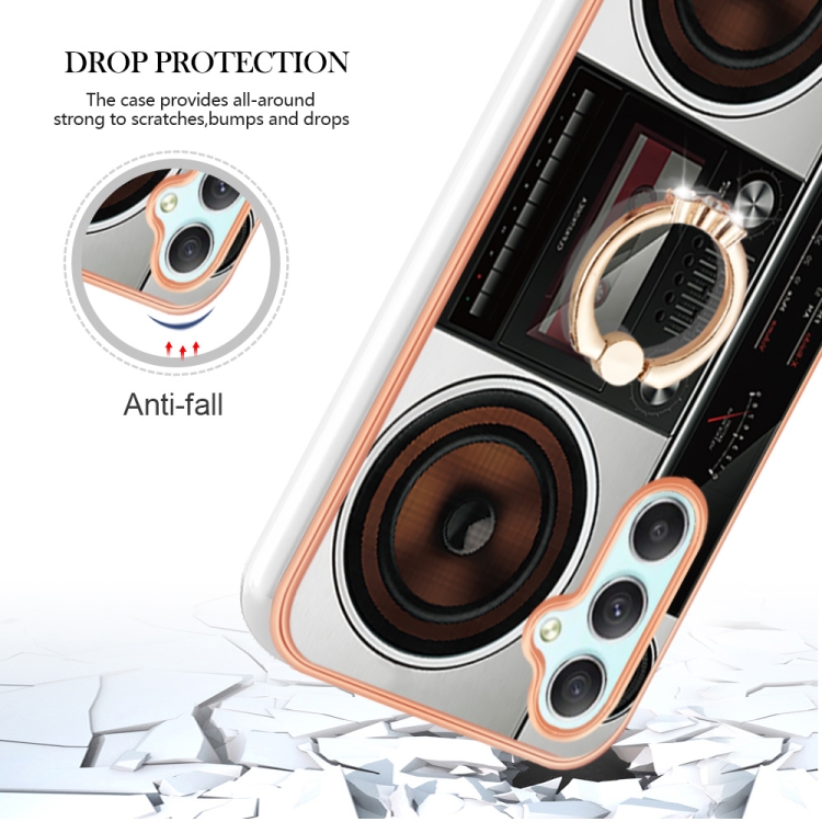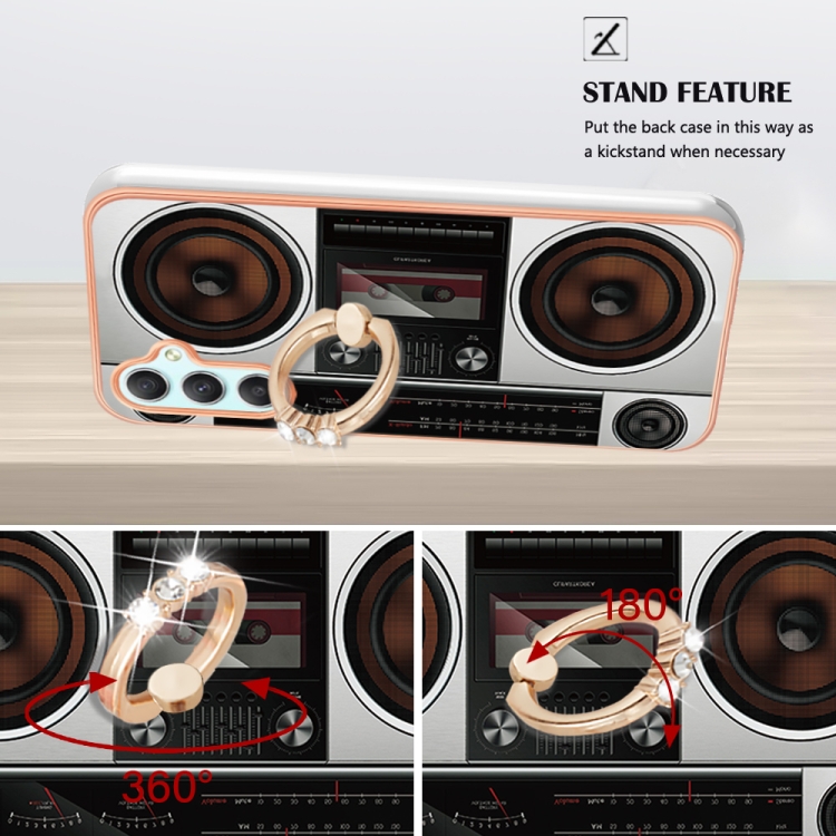Estuche para Teléfono Samsung Galaxy A25 5G Imd Doble Cara Galvanoplastia Soporte Anillo (Radio Retro)