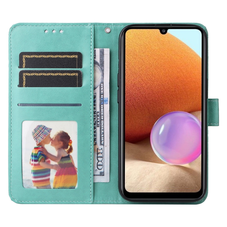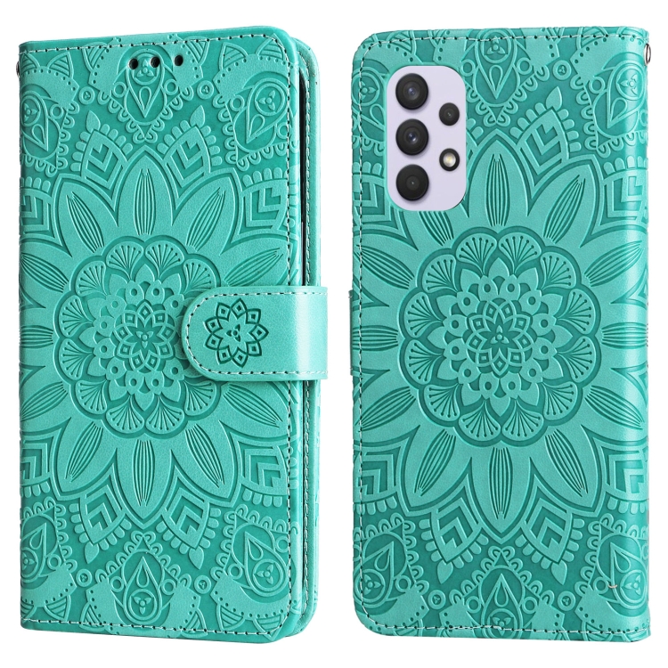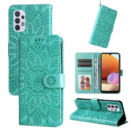 Estuche para teléfono Samsung Galaxy A32 4G Cuero con Estampado de Girasol en Relieve (Verde)