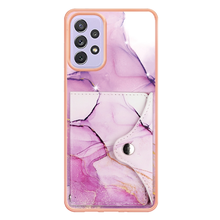 Estuche para Teléfono Samsung Galaxy A33 5G con Ranura para Tarjeta y Patrón Mármol (Oro Rosa Púrpura)