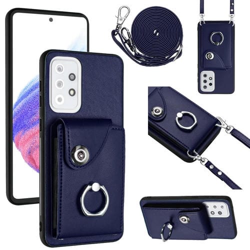 Funda para Teléfono Samsung Galaxy A33 5G con Soporte Anillo y Bolsa para Tarjeta con Cordón Largo (Azul)