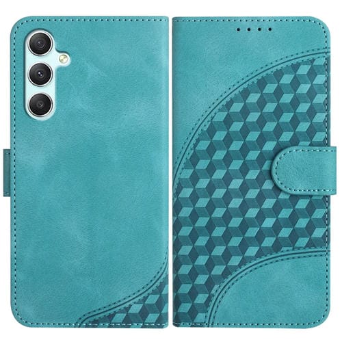 Funda de Cuero Samsung Galaxy A34 5G Yx0060 Relieve Cabeza de Elefante con Cordón (Azul Claro)