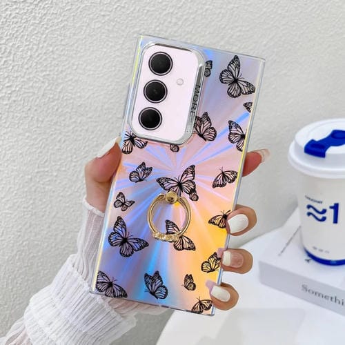 Estuche para Teléfono Samsung Galaxy A35 5G con Soporte Anillo Mariposa Láser (Negro)