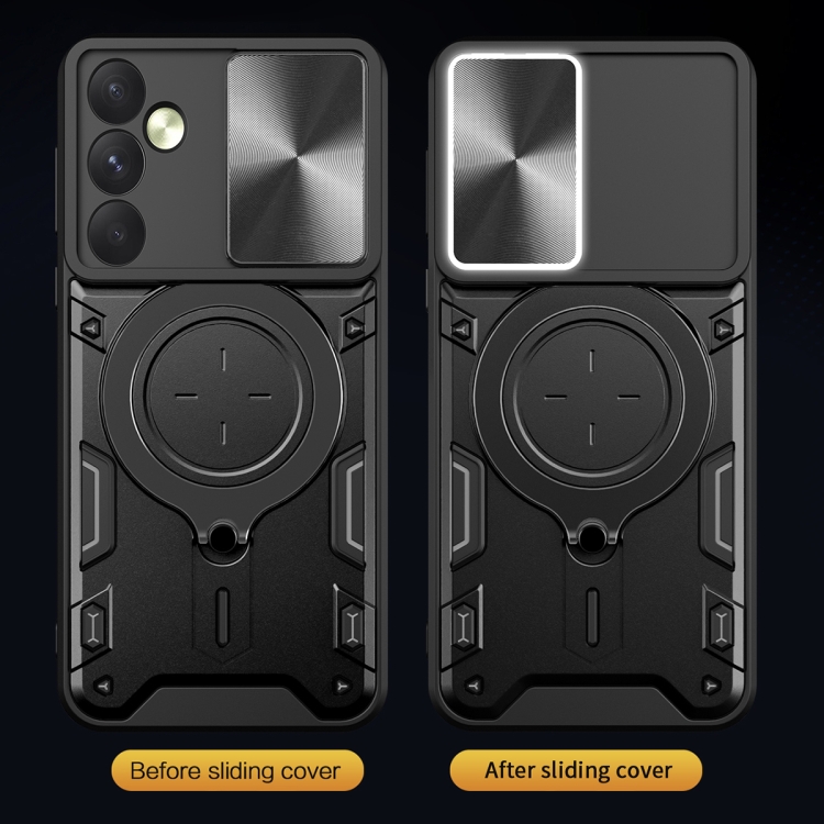 Funda para Teléfono Samsung Galaxy A35 5G con Soporte Magnético y Escudo de Leva Deslizante (Rojo)