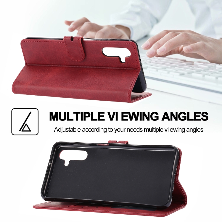 Funda para Teléfono Samsung Galaxy A35 5G Cuero con Tapa Patrón Gato Feliz (Rojo)