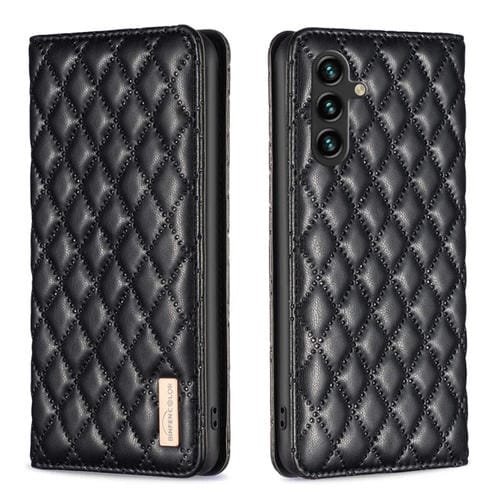 Funda para Teléfono Samsung Galaxy A35 Diamond Lattice con Tapa de Cuero Magnético (Negro)