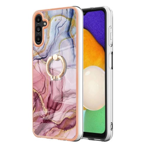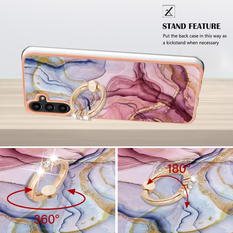 Estuche para Teléfono Samsung Galaxy A35 Imd Doble Cara Mármol Galvanizado con Anillo (Rose Red)
