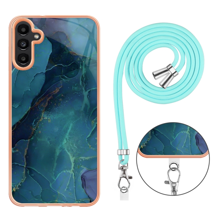 Estuche para Teléfono Samsung Galaxy A35 Imd Doble Cara Mármol Galvanizado con Cordón (Verde)