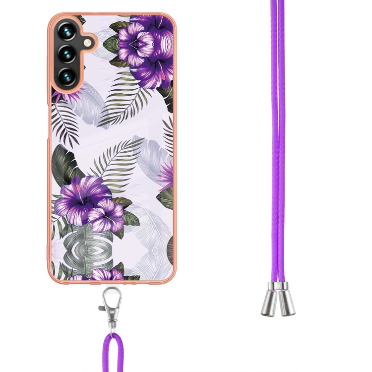 Estuche para Teléfono Samsung Galaxy A35 IMD TPU con Galvanoplastia y Cordón (Flor Púrpura)