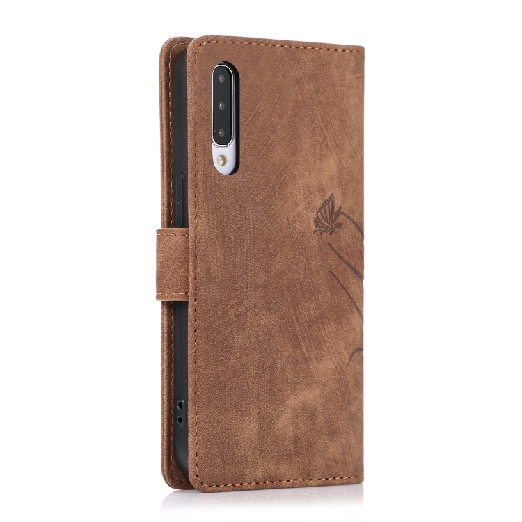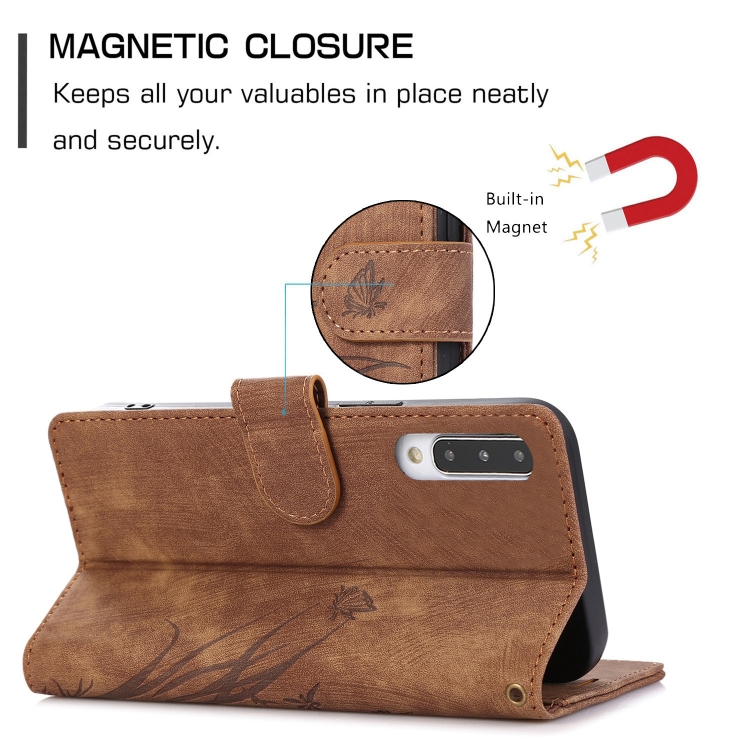 Funda para Teléfono Samsung Galaxy A50 A50S Cuero Relieve Mariposa Orquídea (Marrón)