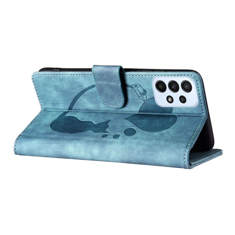 Estuche para Teléfono Samsung Galaxy A52 5G A52S 5G Cuero Relieve Gato Corazón Bolígrafo (Azul)