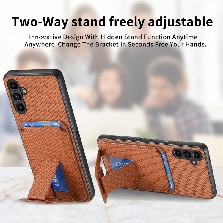 Funda para Teléfono Samsung Galaxy A52 con Soporte Plegable y Bolsa para Tarjetas de Fibra de Carbono (Marrón)