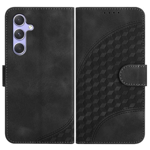 Funda de Cuero Samsung Galaxy A54 5G Yx0060 con Relieve y Cabeza de Elefante con Cordón (Negro)
