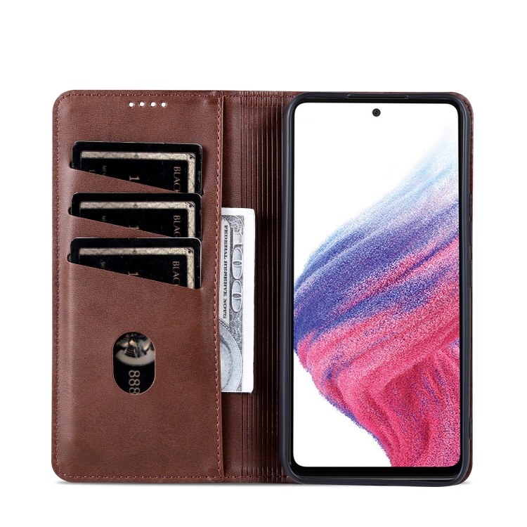 Funda para Teléfono Samsung Galaxy A55 5G Azns Cuero con Tapa Textura de Pantorrilla Magnética (Marrón Oscuro)