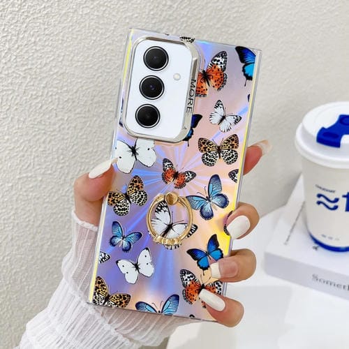 Estuche para Teléfono Samsung Galaxy A55 5G con Soporte Anillo Mariposa Láser Galvanoplastia (Mariposas de Color Ab1)