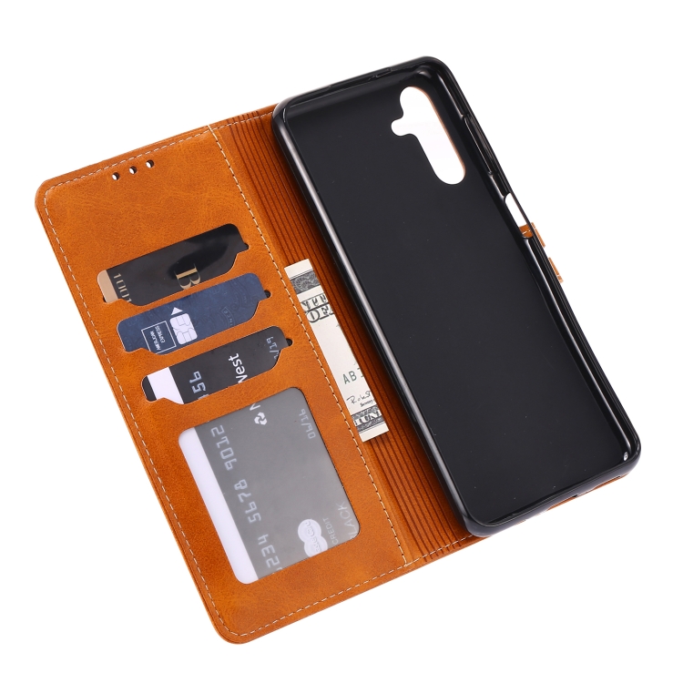 Funda para Teléfono Samsung Galaxy A55 5G Cuero con Tapa y Patrón Gato Feliz en Relieve (Amarillo)