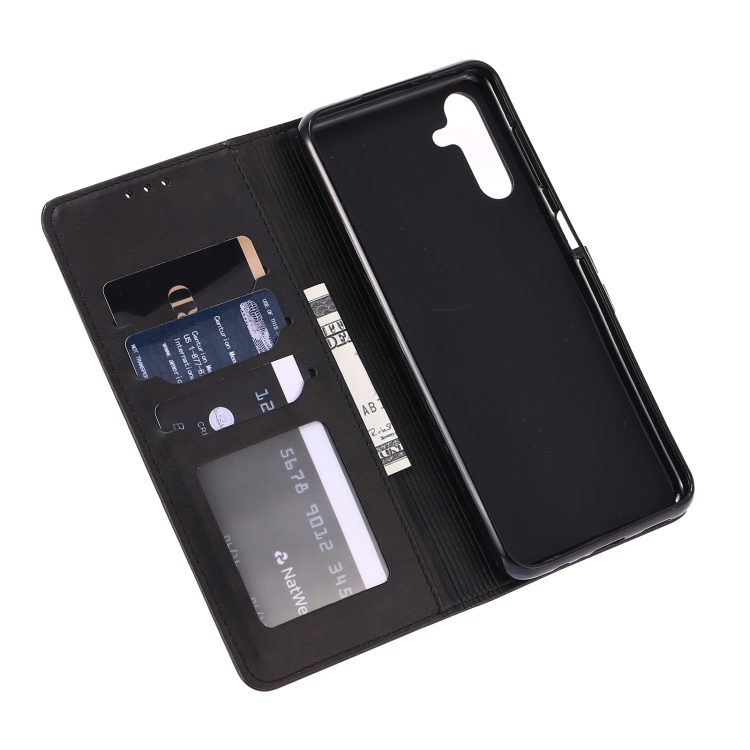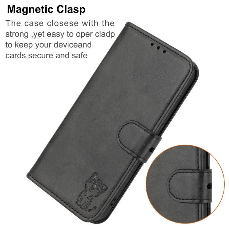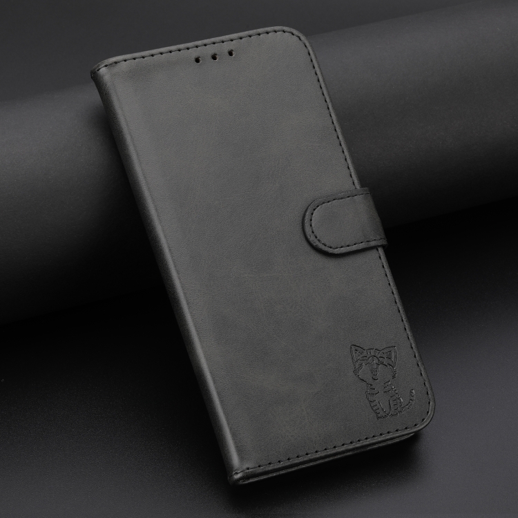 Funda para Teléfono Samsung Galaxy A55 5G Cuero con Tapa y Patrón de Gato Feliz en Relieve (Negro)