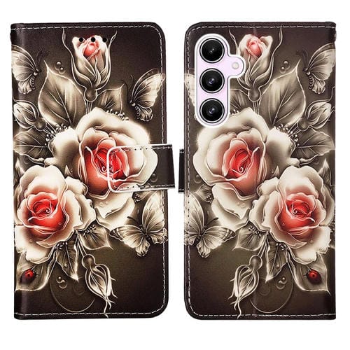 Funda para Teléfono Samsung Galaxy A55 Cuero Tejido Liso Patrón de Dibujo (Rosas en Negro)