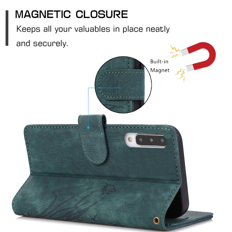 Funda para Teléfono Samsung Galaxy A70 A70S Cuero Relieve Mariposa Orquídea (Verde)