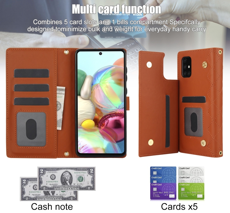 Funda Cruzada de Cuero Samsung Galaxy A71 4G Rómbico Multifunción (Marrón)