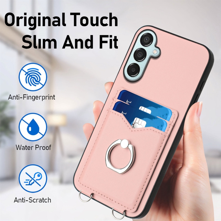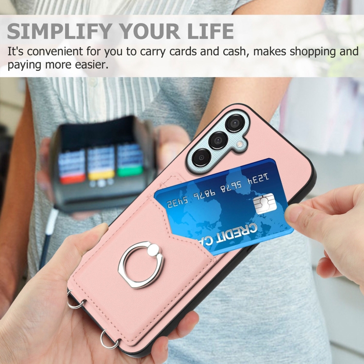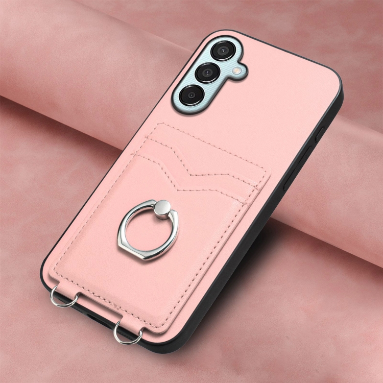 Estuche para Teléfono Samsung Galaxy F15 M15 R20 con Soporte para Tarjeta y Anillo (Rosa)