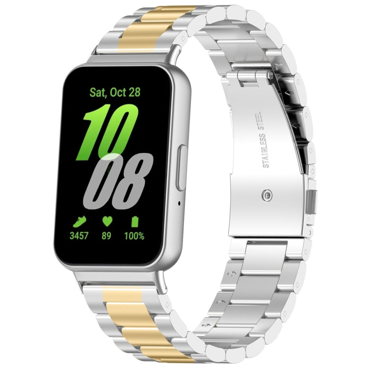 Correa de Reloj para Samsung Galaxy Fit 3 SM-R390 de Acero Inoxidable con Tres Cuentas (Plateado + Dorado)