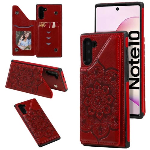 Estuche protector para Samsung Galaxy Note10 con patrón de flor en relieve, soporte, ranuras para tarjetas y marco de fotos (Rojo)