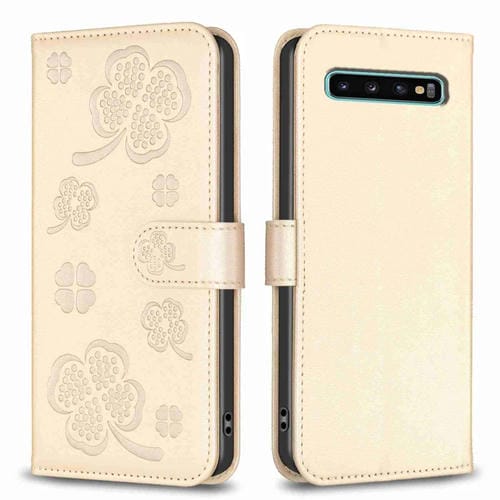 Funda de Cuero para Samsung Galaxy S10 con Relieve de Cuatro Hojas (Dorado)