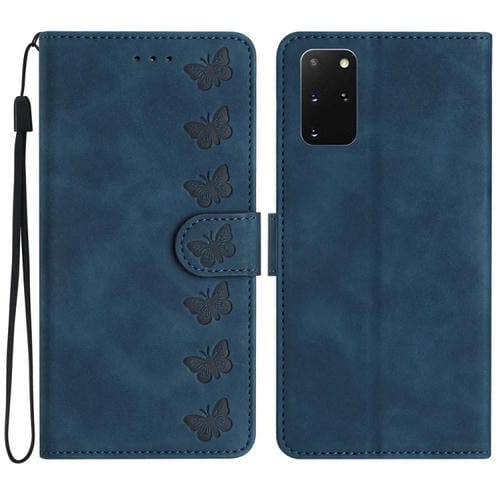 Estuche para Teléfono Samsung Galaxy S20+ Seven Butterflies Cuero En Relieve (Azul)