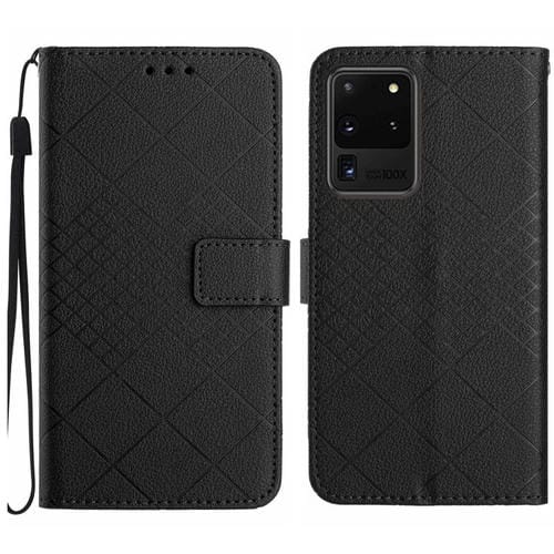 Funda de Cuero Samsung Galaxy S20 Ultra Textura Rejilla Rómbica (Negro)
