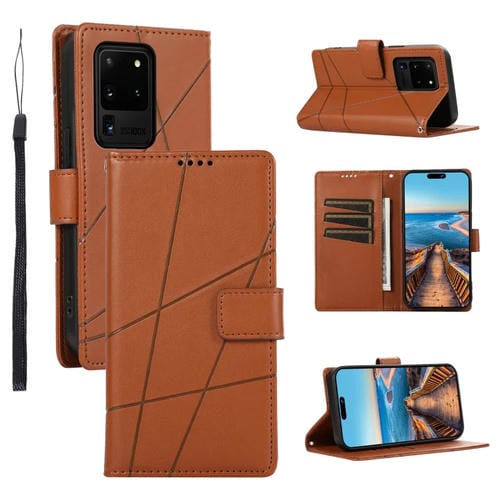 Funda para Teléfono Samsung Galaxy S20 Ultra Pu con Línea En Relieve y Textura de Cuero Genuino (Marrón)