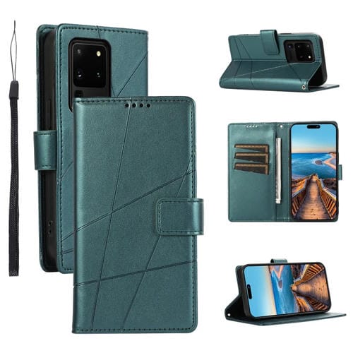 Funda para Teléfono Samsung Galaxy S20 Ultra PU Cuero Genuino Línea En Relieve (Verde)