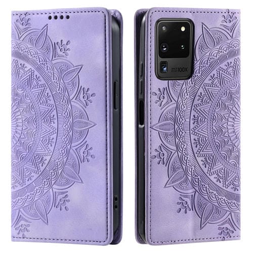 Funda para Samsung Galaxy S20 Ultra Totem Cuero Magnética en Relieve (Púrpura)