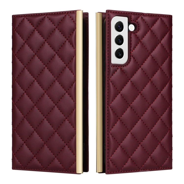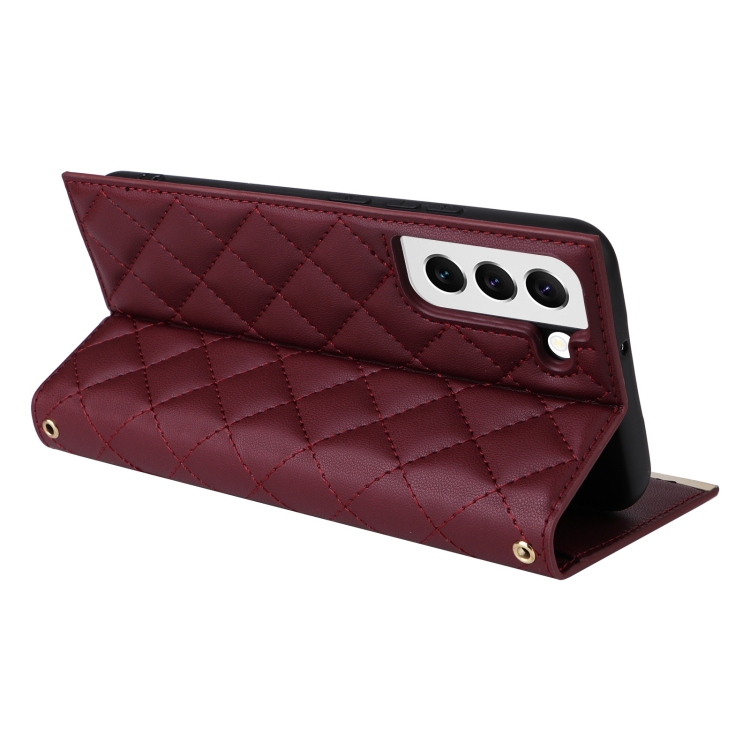 Estuche Cruzado de Cuero para Samsung Galaxy S21 + 5G con Ventosa Romboidal (Clarete)