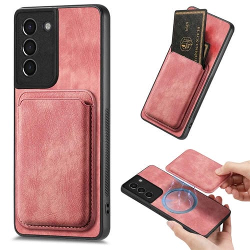 Funda de Teléfono Samsung Galaxy S21 5G Magnética con Bolsa de Tarjeta Cuero Retro (Rosa)