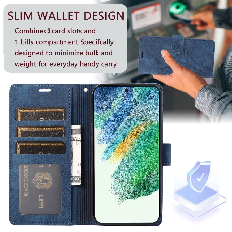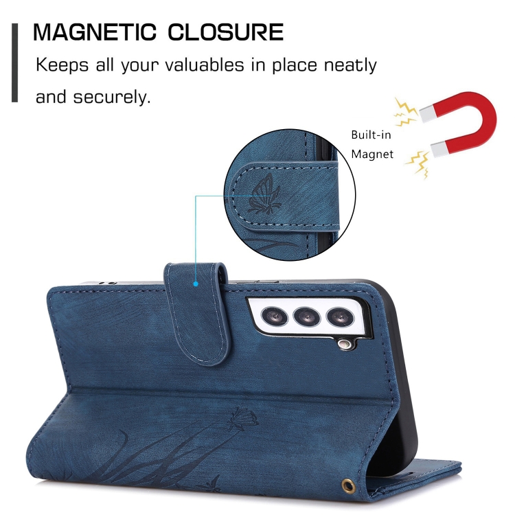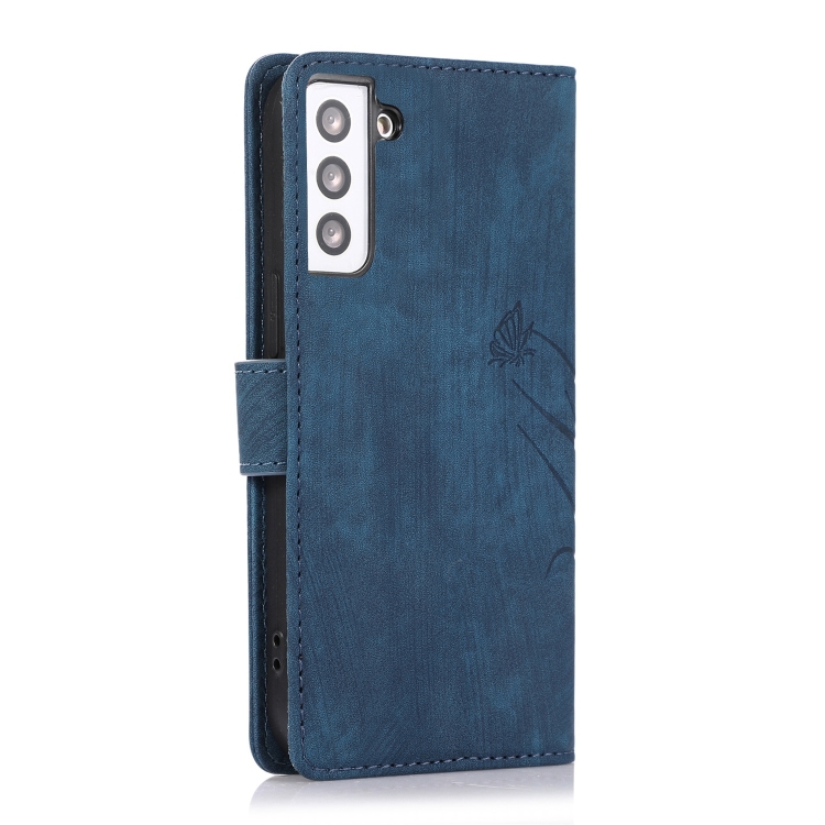 Funda para Teléfono Samsung Galaxy S21 5G Cuero Relieve Mariposa Orquídea (Azul)