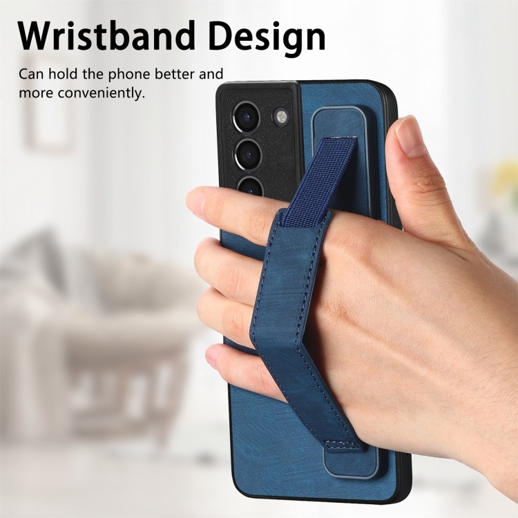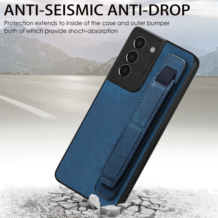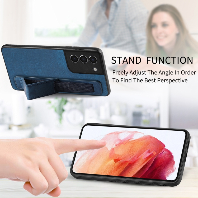 Funda Trasera para Samsung Galaxy S21 5G Cuero con Soporte para Pulsera Retro (Azul)