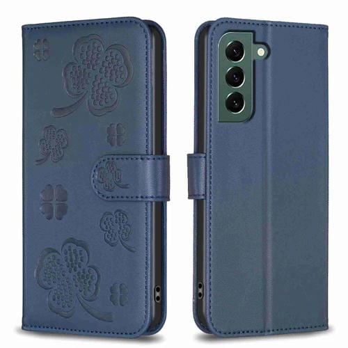 Funda para Teléfono Samsung Galaxy S21 FE 5G Cuero con Relieve de Cuatro Hojas (Azul)