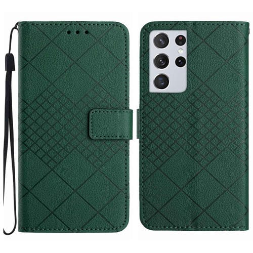 Funda para Samsung Galaxy S21 Ultra 5G Cuero Textura Rejilla Rómbica (Verde)