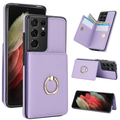 Estuche para Teléfono Samsung Galaxy S21 Ultra 5G Rfid Tarjeta Antirrobo con Soporte para Anillo (Púrpura)