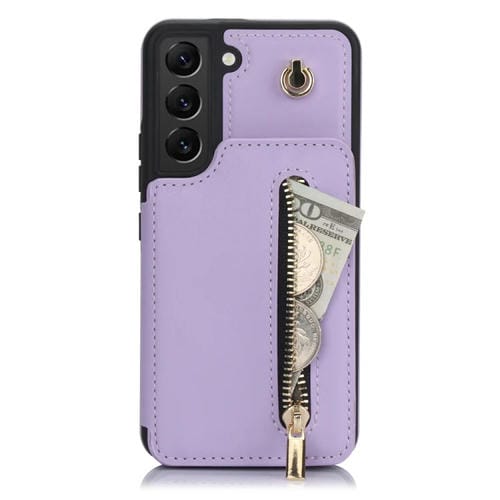 Estuche para Teléfono Samsung Galaxy S22+ 5G Ym006 con Bolsa para Tarjetas y Cremallera (Púrpura Claro)