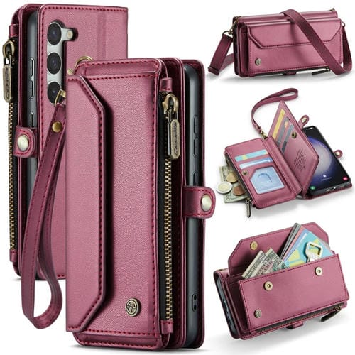 Estuche para Teléfono Samsung Galaxy S23 5G Caseme C36 Cartera con Ranuras para Tarjetas y Cremallera (Rojo Vino)