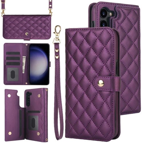 Estuche para Teléfono Samsung Galaxy S23 5G Crossbody Cuero Rómbico Multifunción (Púrpura Oscuro)