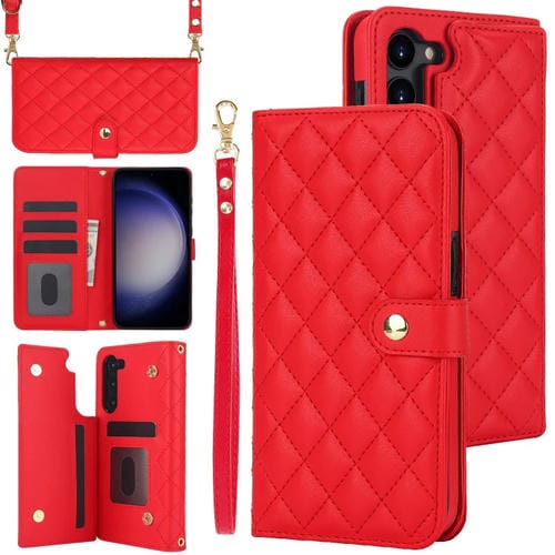 Estuche para Teléfono Samsung Galaxy S23 5G Crossbody Cuero Rómbico Multifunción (Rojo)