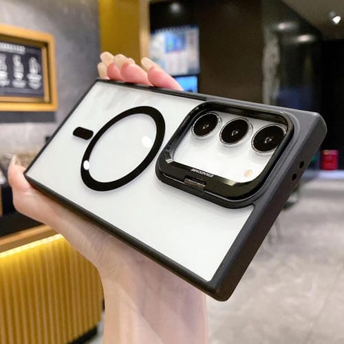 Estuche para Teléfono Samsung Galaxy S23 5G Magsafe Soporte Marco de Lente Metal (Negro)