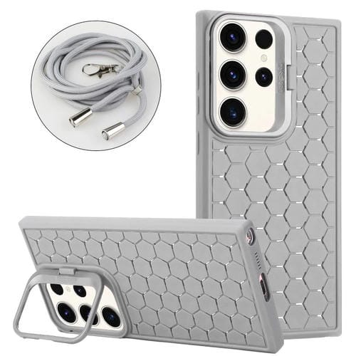 Estuche para Teléfono Samsung Galaxy S24 Ultra 5G Magsafe Soporte para Lente Radiante Panal con Cordón (Gris)