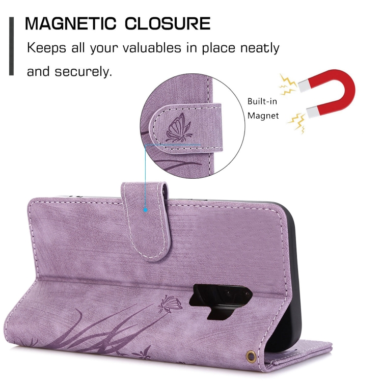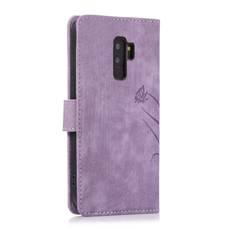Funda de Cuero Samsung Galaxy S9 con Relieve de Mariposa Orquídea (Púrpura)