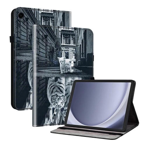 Funda para Tablet Samsung Galaxy Tab A9 Cuero Pintado Textura de Cristal (Tigre Reflejo de Gato)