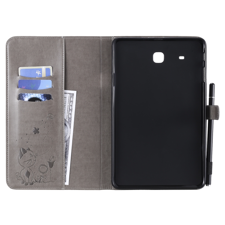 Funda Protectora Samsung Galaxy Tab E9.6 T560 Cuero con Soporte y Ranuras (Gris)
