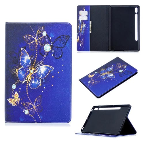Funda para Tablet Samsung Galaxy Tab S8 y Tab S7 T870 Patrón Dibujo Horizontal Flip con Soporte y Ranuras para Tarjetas (Mariposa Púrpura)